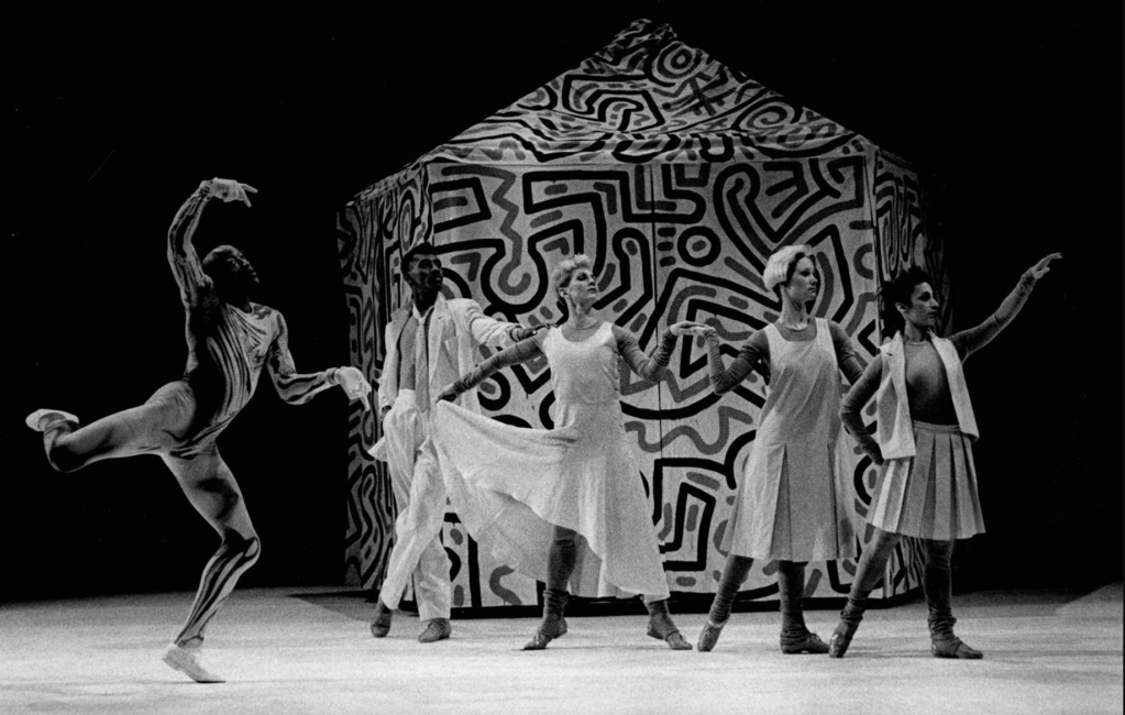 Utilizing his almost-celebrity status in the art world, Willi Smith translated his love for downtown life into the brand. WilliWear featured collaborations with prominent artists, making uniforms for the workers assembling Christo and Jeanne Claude’s Surrounded Islands (1983) and Pont Neuf Wrapped (1985). The designer also premiered a collection at Alvin Ailey, using the company’s dancers as models, and he designed costumes for choreographers Dianne McIntyre and Bill T. Jones. Ruth Carter reached out to Willi Smith while costuming Spike Lee’s School Daze. T-shirts featured artist friends like Barbara Kruger, Jenny Holzer, and Ida Applebroog. Keith Haring designed sets for WilliWear fashion shows, and Nam June Paik shot video footage used in stores and presentations. Willi Smith fused art and fashion into an interdisciplinary approach decades prior to the current productions staged by major fashion houses.